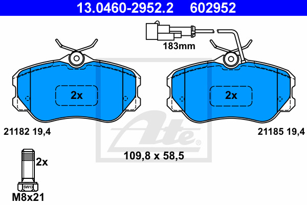 Dodatkowe informacje o produkcie Klocki hamulcowe - komplet 13.0460-2952.2 ATE