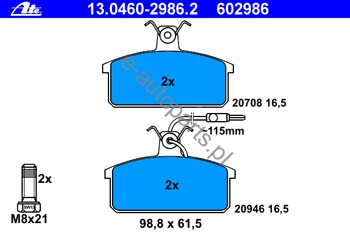 Dodatkowe informacje o produkcie Klocki hamulcowe - komplet 13.0460-2986.2 ATE