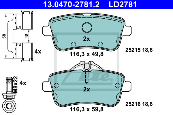 Dodatkowe informacje o produkcie Klocki hamulcowe - komplet, ATE Ceramic 13.0470-2781.2 ATE