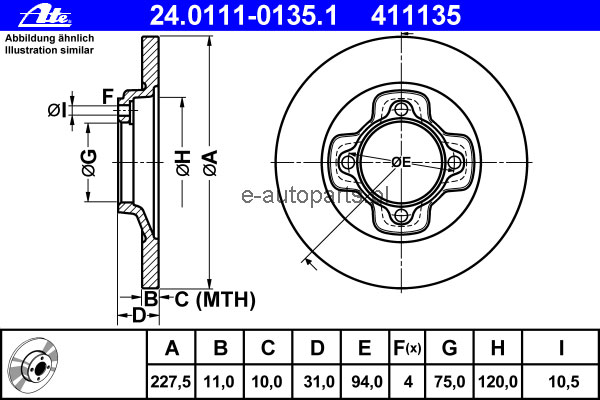 Dodatkowe informacje o produkcie Tarcza hamulcowa 24.0111-0135.1 ATE