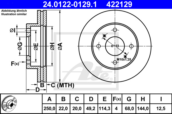 Dodatkowe informacje o produkcie Tarcza hamulcowa 24.0122-0129.1 ATE