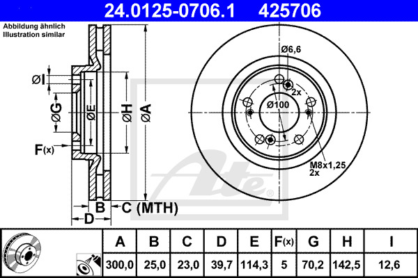 Dodatkowe informacje o produkcie Tarcza hamulcowa 24.0125-0706.1 ATE