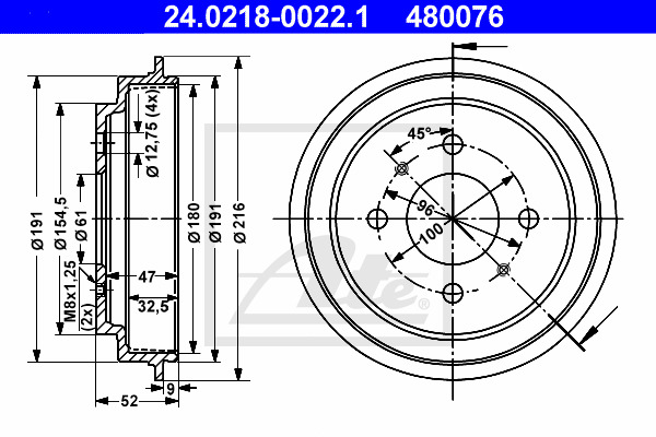 Dodatkowe informacje o produkcie Bęben hamulcowy 24.0218-0022.1 ATE