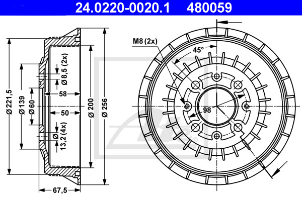 Dodatkowe informacje o produkcie Bęben hamulcowy 24.0220-0020.1 ATE