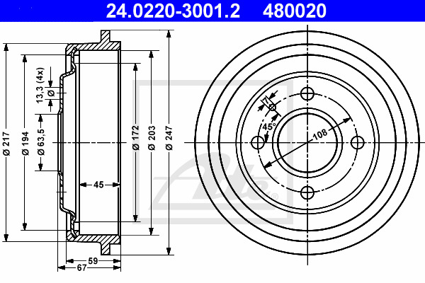 Dodatkowe informacje o produkcie Bęben hamulcowy 24.0220-3001.2 ATE