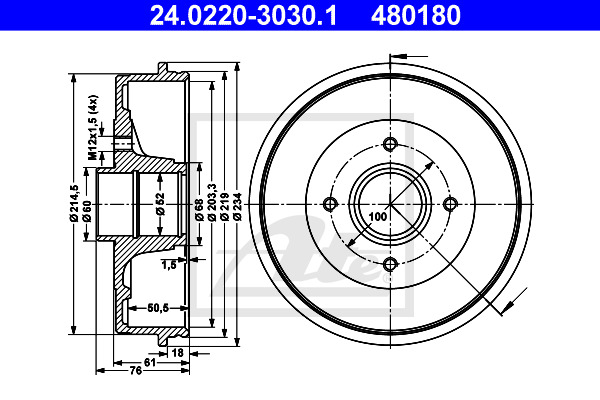 Dodatkowe informacje o produkcie Bęben hamulcowy 24.0220-3030.1 ATE