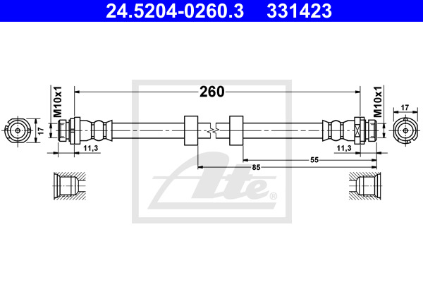Dodatkowe informacje o produkcie Przewód hamulcowy elastyczny 24.5204-0260.3 ATE