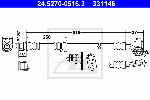 Dodatkowe informacje o produkcie Przewód hamulcowy elastyczny 24.5270-0516.3 ATE
