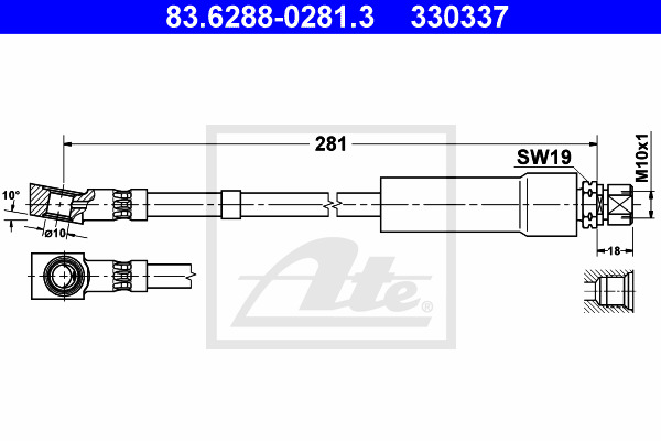 Dodatkowe informacje o produkcie Przewód hamulcowy elastyczny 83.6288-0281.3 ATE