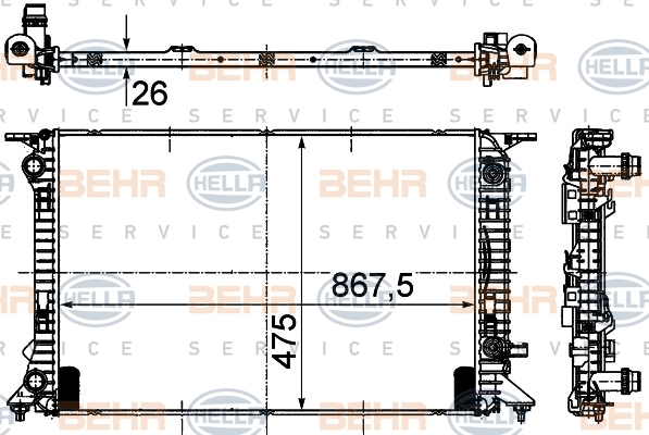 Dodatkowe informacje o produkcie Chłodnica, układ chłodzenia silnika 8MK 376 745-634 BEHR HELLA SERVICE