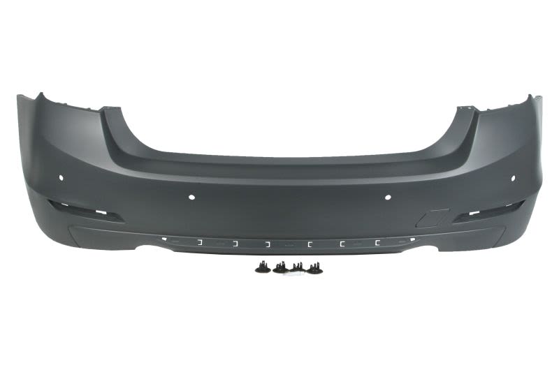 Zderzak (tył, LUXURY/MODERN/SPORT, liczba otworów na parkomat: 4, do malowania, wycięcie na rurę wydechową: podwójną) pasuje do: BMW 3 F30, F31, F80 Sedan 10.11-05.15