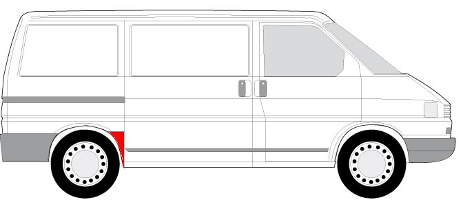Reperatura błotnika tył P (przed kołem, model krótki) pasuje do: VW TRANSPORTER T4 07.90-04.03
