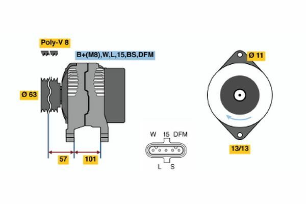 Dodatkowe informacje o produkcie Alternator 0 124 555 009 BOSCH