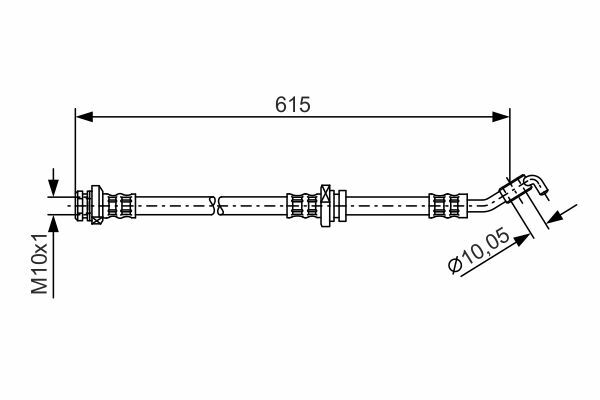 Przewód hamulcowy elastyczny przód P (dł. 605mm,śr. 10,2mm, M10x1/Banjo) pasuje do: NISSAN MICRA C+C III, MICRA III, NOTE 1.0-1.6 03.02-08.13