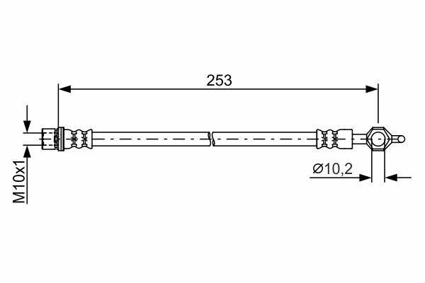 Przewód hamulcowy elastyczny tył L/P (dł. 253mm,śr. 10,2mm, M10x1) pasuje do: SUBARU TREZIA, TOYOTA URBAN CRUISER, VERSO S, YARIS, YARIS / VIOS 1.0-1.8 08.05-