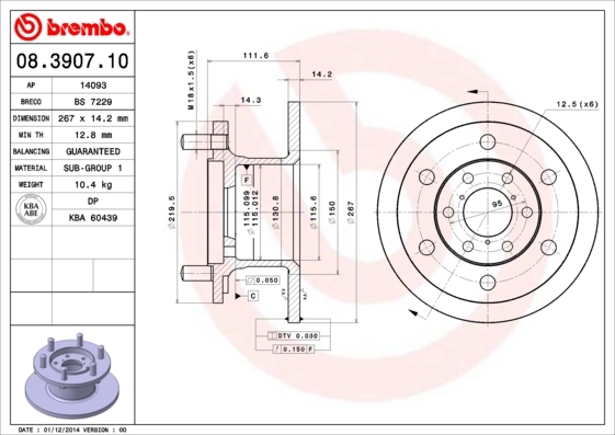 Dodatkowe informacje o produkcie Tarcza hamulcowa 08.3907.10 BREMBO