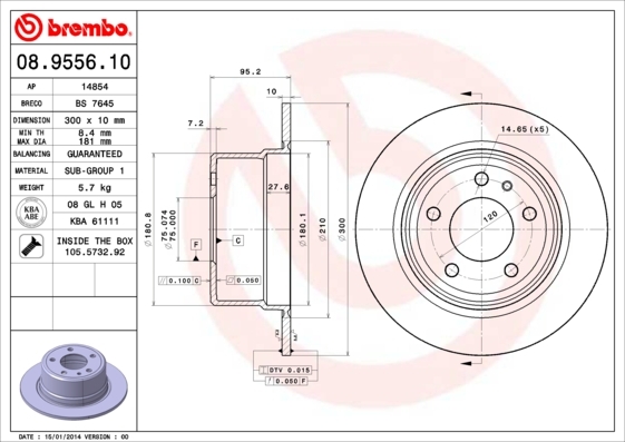 Dodatkowe informacje o produkcie Tarcza hamulcowa 08.9556.10 BREMBO