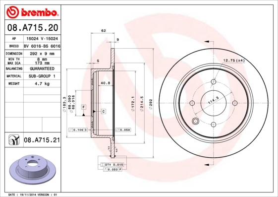 Dodatkowe informacje o produkcie Tarcza hamulcowa 08.A715.20 BREMBO