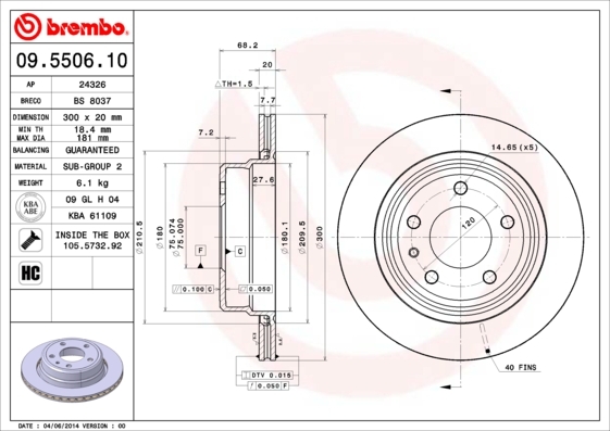 Dodatkowe informacje o produkcie Tarcza hamulcowa 09.5506.10 BREMBO