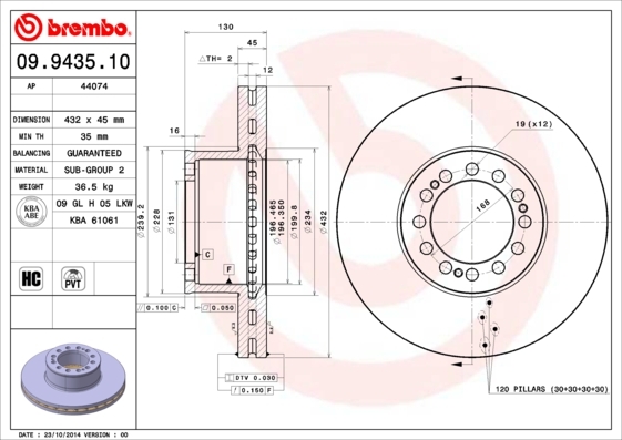 Dodatkowe informacje o produkcie Tarcza hamulcowa 09.9435.10 BREMBO