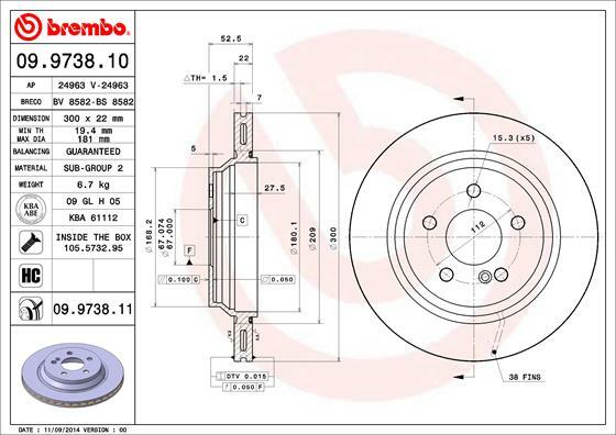 Dodatkowe informacje o produkcie Tarcza hamulcowa 09.9738.10 BREMBO