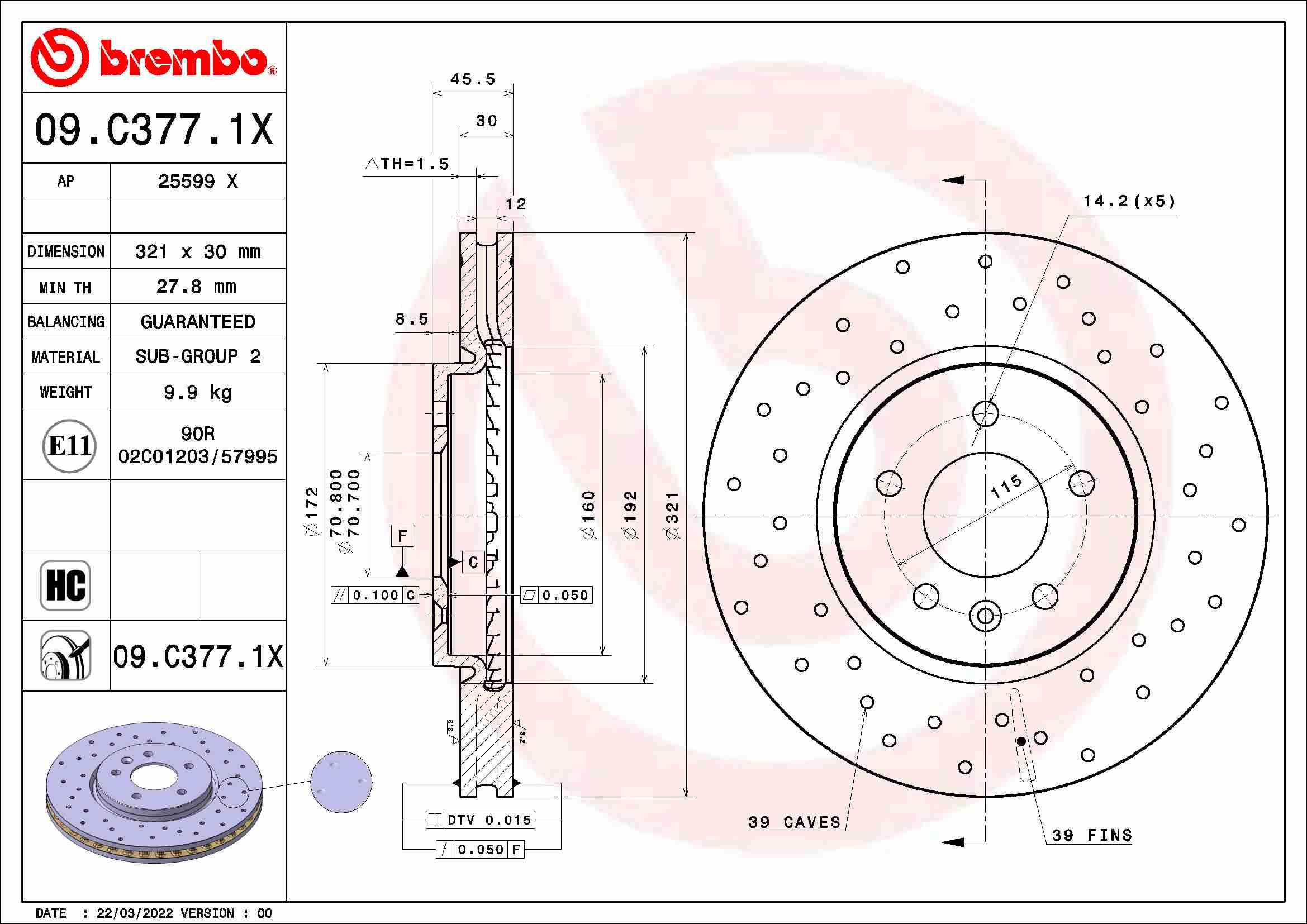Dodatkowe informacje o produkcie TARCZA HAMULC. OPEL ASTRA J 09-15 09.C377.1X BREMBO