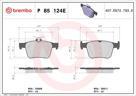 Dodatkowe informacje o produkcie Klocki hamulcowe kpl. P 85 124E BREMBO