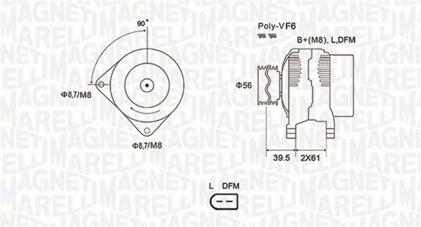 | Odstęp pomiędzy kołem pasowym i alternatorem [mm] | 39,5 |