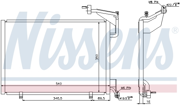 Wymiary radiatora 541X380*X6