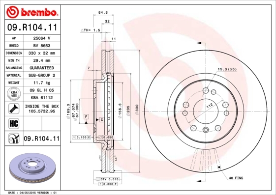 Grubość tarczy hamulcowej [mm]32,0