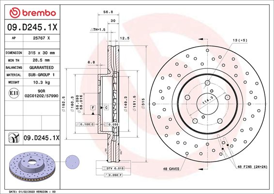 | Typ tarczy hamulcowej | perforowany / wentylowany wewnętrznie |