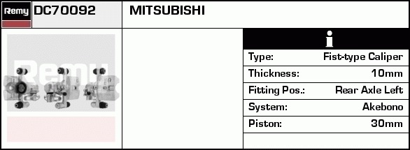 Zastosowanie Zacisk hamulca, Calipers DC70092 DELCO REMY AUTOMOTIVE EUROPE w samochodach: