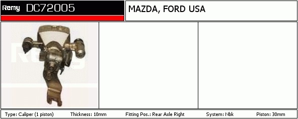 Dodatkowe informacje o produkcie Zacisk hamulca, Calipers DC72005 DELCO REMY AUTOMOTIVE EUROPE