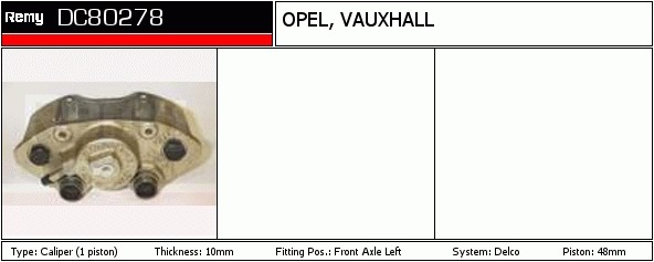 Dodatkowe informacje o produkcie Zacisk hamulca, Calipers DC80278 DELCO REMY AUTOMOTIVE EUROPE