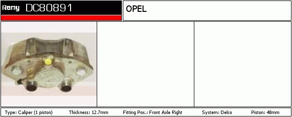 Dodatkowe informacje o produkcie Zacisk hamulca, Calipers DC80891 DELCO REMY AUTOMOTIVE EUROPE