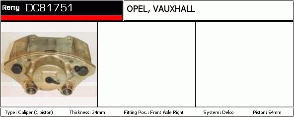 Dodatkowe informacje o produkcie Zacisk hamulca, Calipers DC81751 DELCO REMY AUTOMOTIVE EUROPE
