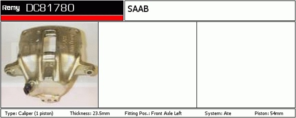 Dodatkowe informacje o produkcie Zacisk hamulca, Calipers DC81780 DELCO REMY AUTOMOTIVE EUROPE