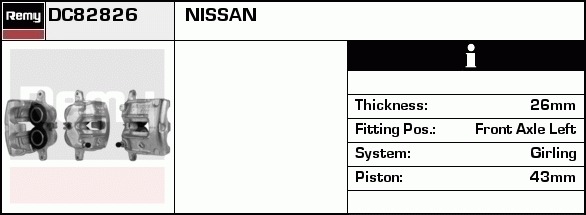 Dodatkowe informacje o produkcie Zacisk hamulca, Calipers DC82826 DELCO REMY AUTOMOTIVE EUROPE