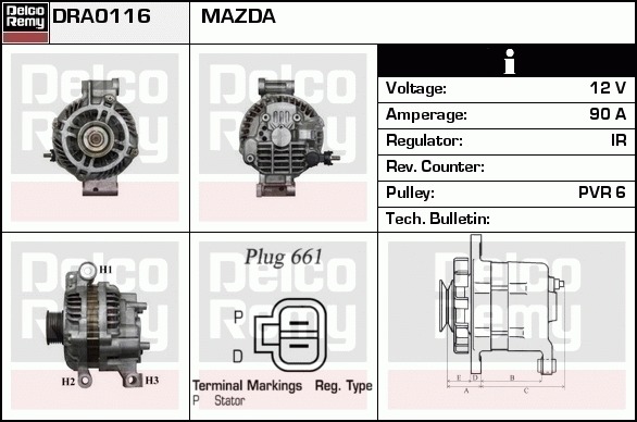 Dodatkowe informacje o produkcie Alternator, Light duty Japan Reman DRA0116 DELCO REMY AUTOMOTIVE EUROPE