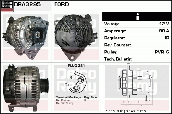 Dodatkowe informacje o produkcie Alternator, Light duty Europe Reman DRA3295 DELCO REMY AUTOMOTIVE EUROPE