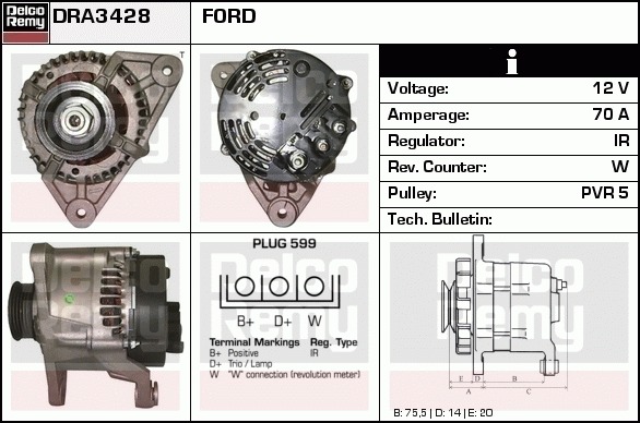 Dodatkowe informacje o produkcie Alternator, Light duty Europe Reman DRA3428 DELCO REMY AUTOMOTIVE EUROPE