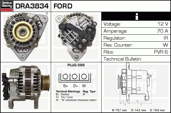 Dodatkowe informacje o produkcie Alternator, Light duty Europe Reman DRA3834 DELCO REMY AUTOMOTIVE EUROPE