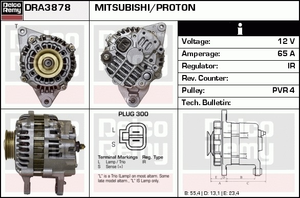 Dodatkowe informacje o produkcie Alternator, Light duty Japan Reman DRA3878 DELCO REMY AUTOMOTIVE EUROPE