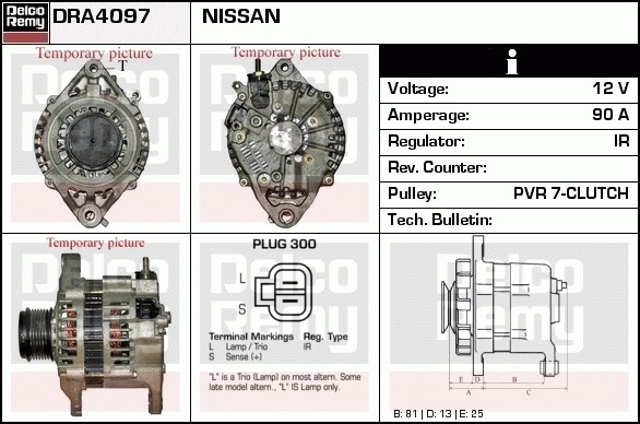 Dodatkowe informacje o produkcie Alternator, Light duty Japan Reman DRA4097 DELCO REMY AUTOMOTIVE EUROPE