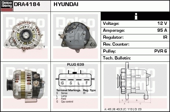 Dodatkowe informacje o produkcie Alternator, Light duty Japan Reman DRA4184 DELCO REMY AUTOMOTIVE EUROPE