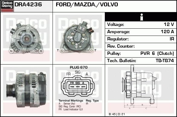 Dodatkowe informacje o produkcie Alternator, Light duty Europe Reman DRA4236 DELCO REMY AUTOMOTIVE EUROPE