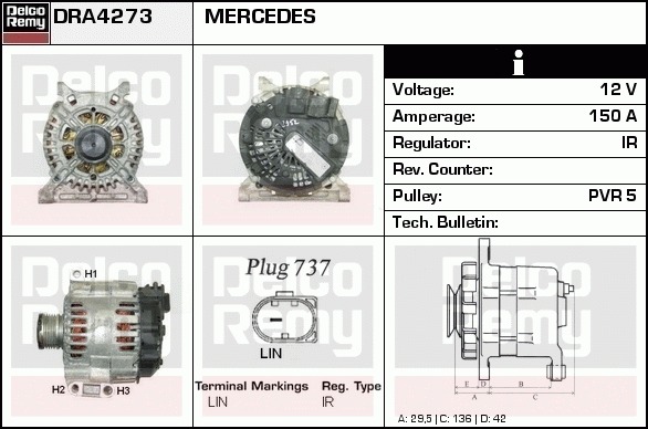 Dodatkowe informacje o produkcie Alternator, Light duty Europe Reman DRA4273 DELCO REMY AUTOMOTIVE EUROPE
