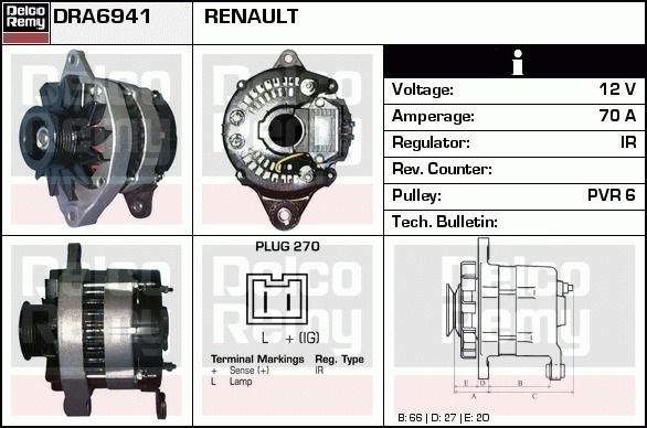 Dodatkowe informacje o produkcie Alternator, Light duty Europe Reman DRA6941 DELCO REMY AUTOMOTIVE EUROPE