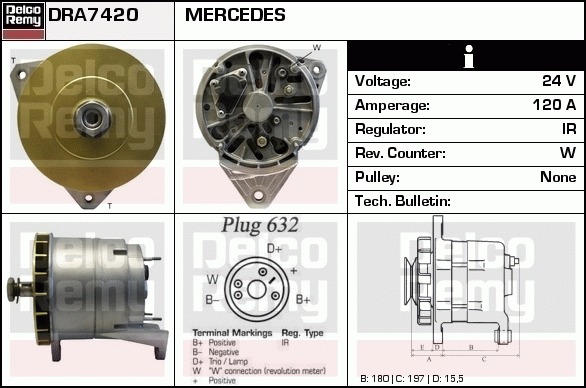 Dodatkowe informacje o produkcie Alternator, Heavy duty Reman DRA7420 DELCO REMY AUTOMOTIVE EUROPE