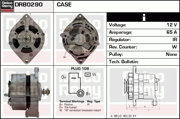 Dodatkowe informacje o produkcie Alternator, Heavy duty Reman DRB0290 DELCO REMY AUTOMOTIVE EUROPE